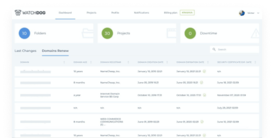 Tracks website and domain changes automatically (so we can change a domain the minute it becomes available)
